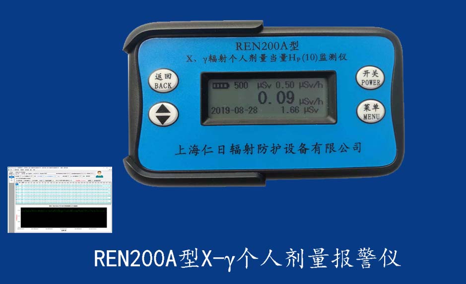 REN200型X、γ個人劑量報警儀(又叫X、γ輻射個人劑量當量HP(10)監(jiān)測儀)內(nèi)置高靈敏度蓋格計數(shù)管為探測器,主要用來監(jiān)測各種放射性工作場所的X、γ以及硬β射線的輻射,具有響應(yīng)快,測量范圍寬的特點。能顯示工作場所的劑量當量率和累積劑量,更換電池時,日期及累積數(shù)據(jù)能永久保存?蛇x配RenRiPersonal個人劑量管理軟件,該軟件可存儲多個人的歷史數(shù)據(jù),能記錄日累積、月累積、年累積、輻照時長、計算平均劑量率、扣除或不扣除本底輻射,且以文字和圖譜的方式展現(xiàn)數(shù)據(jù)。廣泛應(yīng)用于核電站、加速器、鋼鐵、化工、同位素應(yīng)用、醫(yī)院、工業(yè)X、γ無損探傷、放射醫(yī)療、鈷源治療、γ輻照、放射性實驗室、核設(shè)施周圍環(huán)境監(jiān)測